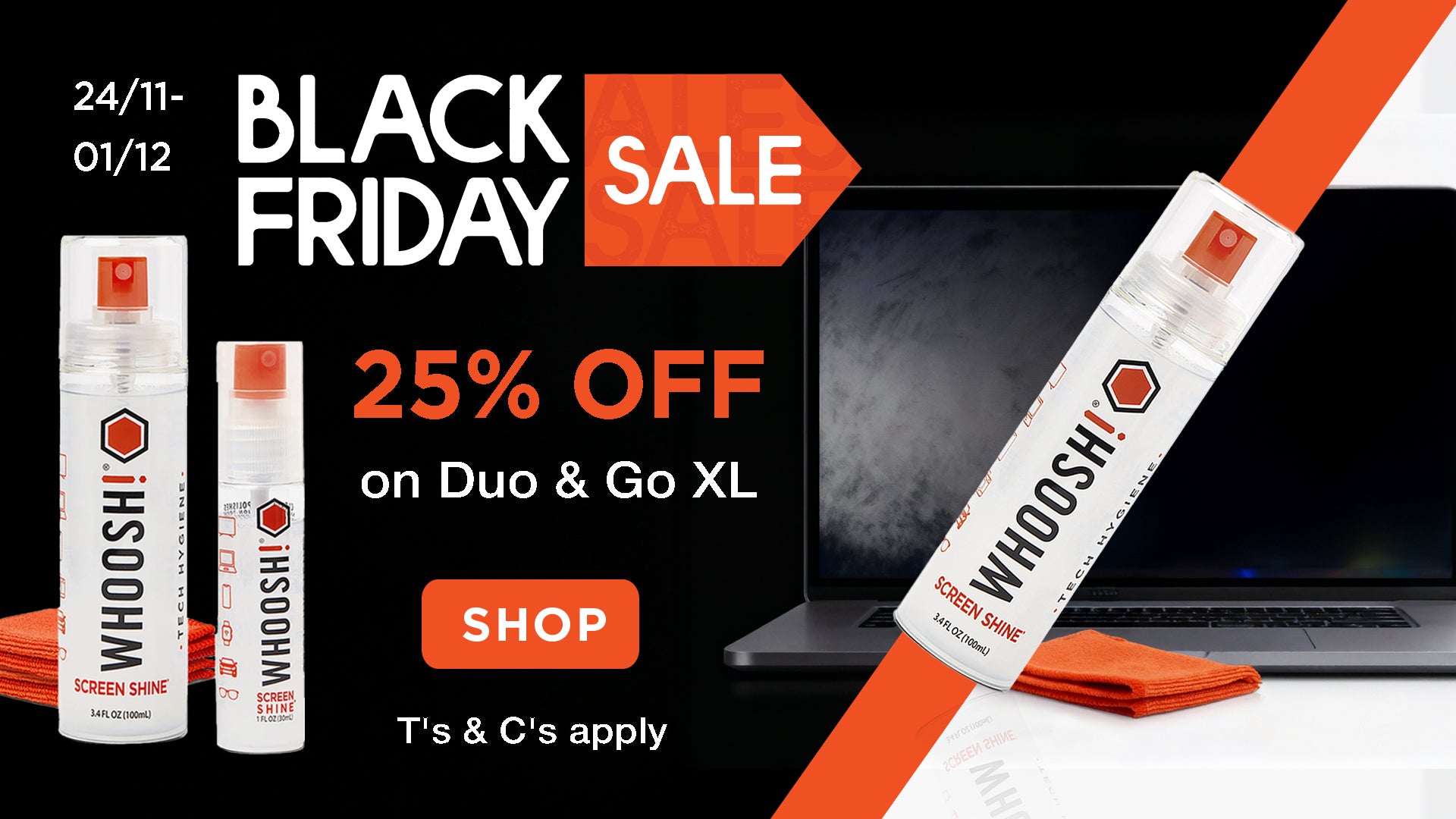 WHOOSH! Duo Screen Cleaner 100mL + 8mL with 2 Microfibre Cloths